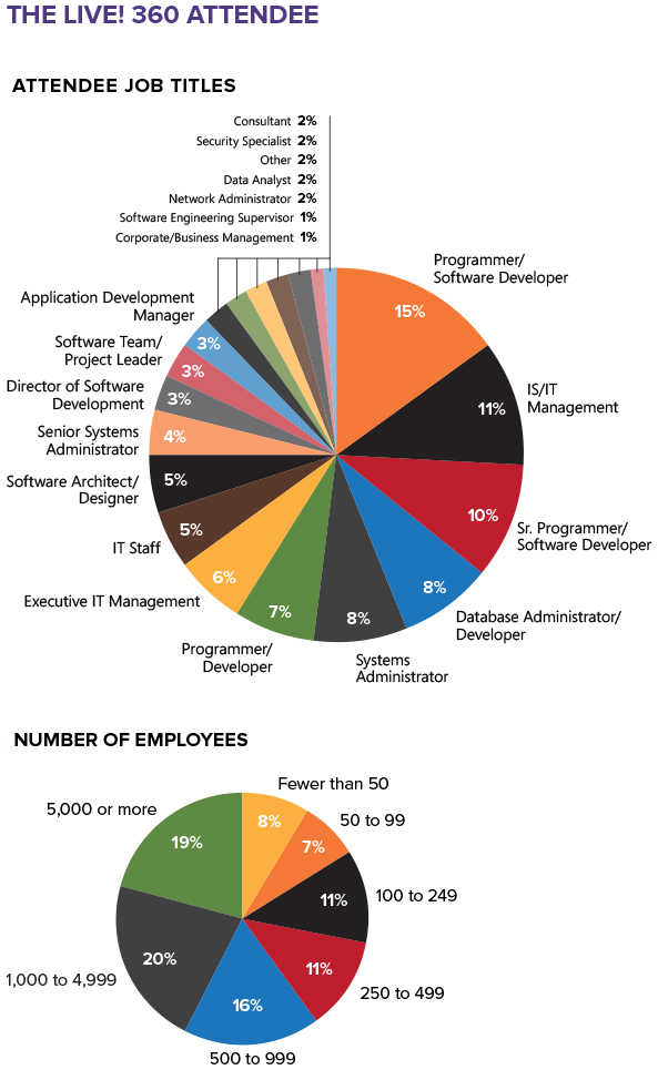 Live! 360 Tech Con brings together 6 co-located conferences, attracting IT, Developer, Data, AI, Cybersecurity, and enterprise architecture professionals from around the globe. In addition to the education and networking opportunities offered to attendees, they also want to hear about innovative solutions that make their lives easier, and they demand credible and unbiased information to build, buy, and manage the development and processes within their organizations. This is a unique opportunity to get face time with the decision makers and influencers you want (and need) to meet.